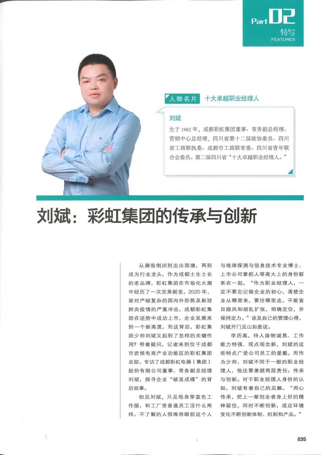 由于刘总卓越的领导才能,在由四川省工商业联合会指导,四川省职业经理研究会、四川省中小企业协会、四川省企业家研究会、四川省川商联合会、四川省职业经理资质评价中心主办的第二届四川省杰出·优秀职业经理人及最佳雇主推选活动中,成功胜出,荣获最高级别的金领袖奖。