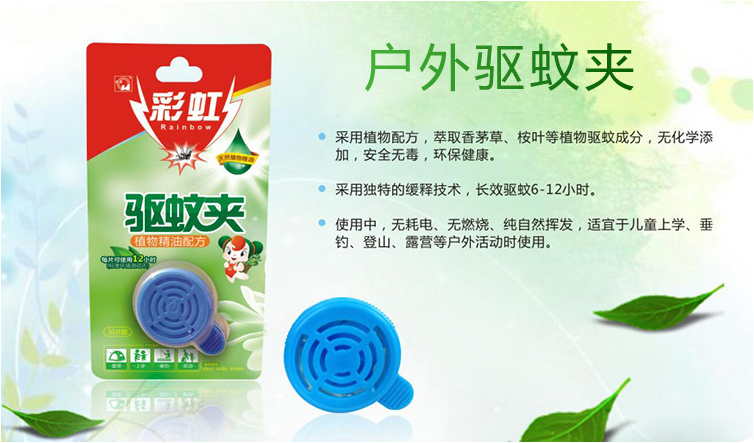 ·植物精油驱蚊夹(圈):采用独特的缓释技术,长效驱蚊6-12小时,便携式设计,携带方便。